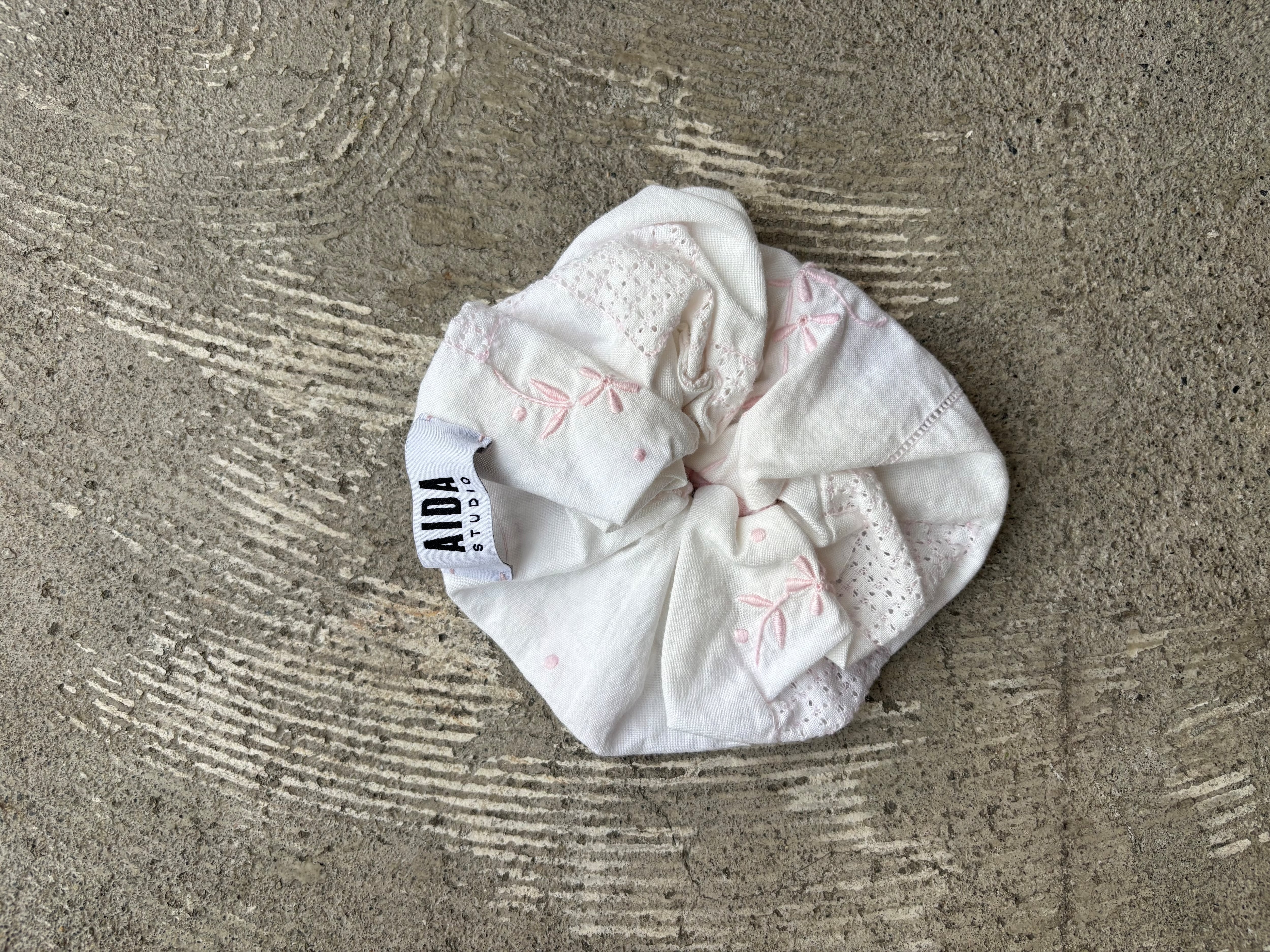 プエルトリコからVERDEのためにヴィンテージ生地を選んでもらいサイズをリクエストして2種のサイズのシュシュを作ってもらいました。