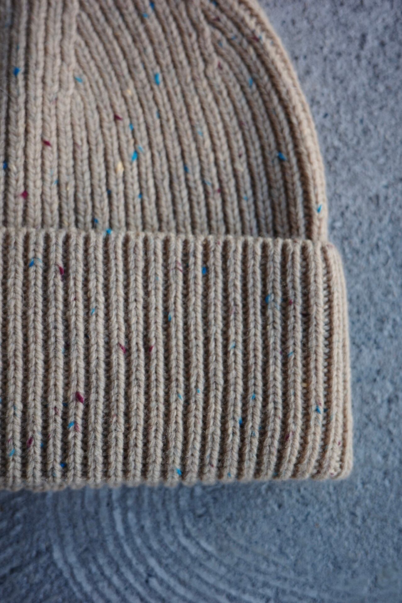 メンズレディース問わず被れるメリノウールニット帽。メランジの糸がとても可愛いです。